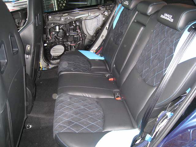 フロントにあわせて、リヤも出来上がりました、おかげさまで張替えの事業のほうも大忙し!シアターも忙しいし、カーオーディオは僕にはもう段取りがまったくわからない状況で動いています。とにかく今はこの車の完成と、次の大きなイベントに向けてマセラティを完成させるのに必死です。