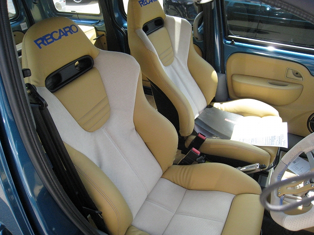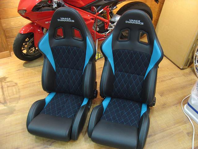 レザーで同じ色が無いか?アルカンターラならどうか?まぁいろいろ探しましたがぴったりというのは、だいたい無いのが普通です、昔は近い色であきらめていましたが、何事も進化しているので、無いなら染めよっ!っと言った感じで染めました。いかがでしょうか?本皮とアルカンターラの仕上がり、うーんカッコイ!でも、シートに、アルミに、足にマフラー、ブレーキなんてやった日にゃー、車体価格をオーディオの前で超えてしまいそうですね(^^)