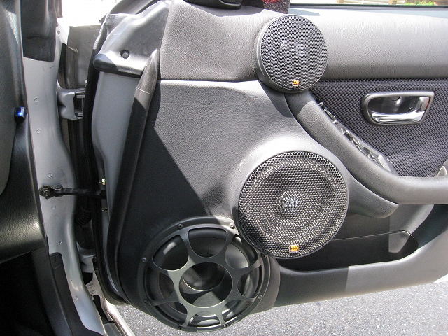 このドアは!何じゃースピーカーだらけ!で!音は、うーん変わった音だ!なんか少し変だが、悪い音ではない超個性的、コンペでは勝つ音では無いと思いますが、個性的で印象深いです。みんなおんなじ方向を向いている中で、一台だけよそ見してる感じ、でも悪い音じゃない、こんな車、僕は好きです。オーナーさんごめんね、これは褒めているのでご了承ください。