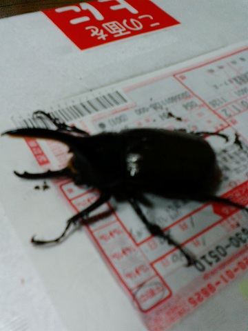角がでかくて、ごっついカッコ良いのを期待していたのですが!出てきたのはこんなに体はでかいけど、角が小さかったです。どうやら想像してたカブトムシとは種類が違うようで、ヘラクレス、ヘラクレスとか、ヘラクレス、リッキーとか、レイディとか、いろいろいるようです。実はこれまで虫に触る事が出来なかったのですが、今回芋虫から成虫になる姿をみて、怖くなくなりました。ついつい、想像してた形のカブトムシも欲しくなって、ヤフオクで買ってしまいました、そしてクワガタも、ほんでもって幼虫も、うーんますます生き物が増えて、現在リビングはいろいろな生き物だらけです。しかし、それでもまだぽっぽちゃんか、ダンシングオームにめちゃめちゃ興味があります。