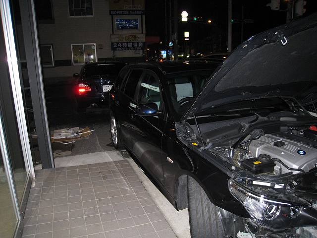 ピット内ではアイシスとハイエースが作業中ですが、おもてでは同じ色の5シリーズのワゴンが並んでました。僕は後のほうのホイルの交換が担当です。写真が暗いですが、さくっと交換完了!最近はホイルの交換や、エンブレムの注文が増えています、あとステアリングの交換もですね。いまはバタバタですが落ち着いたら、二階に小物のコーナーでも作ります。