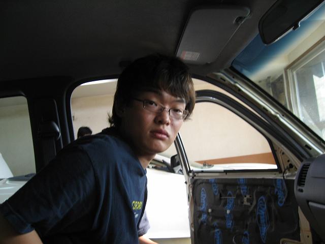 村田君が取り掛かりましたが、どうやら?今のところ他のスタッフとは時間の流れが違うようで・・・彼がパネルをばらすうちに、ドアが店長と西村店長の手により完成、彼がパネルをばらすうちに、藤井選手の手により、ラゲッジ完成?