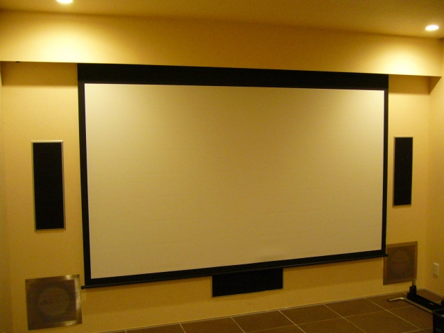 とても遅くまで、オーナーにお付き合い頂いて、何とか完成、本当に申し訳ありません。しかも、NET環境がなく少し仕事を残してしまって、重ね重ね申し訳ありません。しかし、映像はさすがにHD1(ビクターの最新型プロジェクター)ですので、とっても綺麗です。しかも最新型のシャープの52インチ液晶アクオス、すこしIRコードが新しすぎて合わなくて・・・次回微調整です。