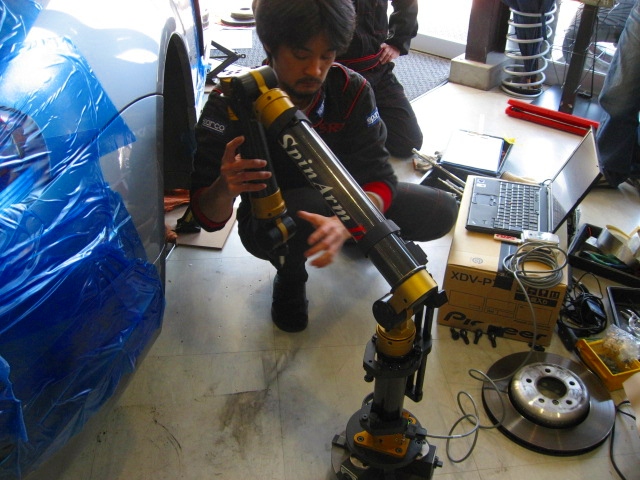 ブレーキ間に合う?某T氏(やってみよかー、でも、もっと早くイベント決まってたんちゃうん?)そうやねんけど、ごめん。(しゃーないなー何とかするわー)と言いながら、すごい三次元測定器を持ってきて、採寸、そして、帰ってから、キャリパーをペイントしてくれるそうです。うーん、強い見方や!