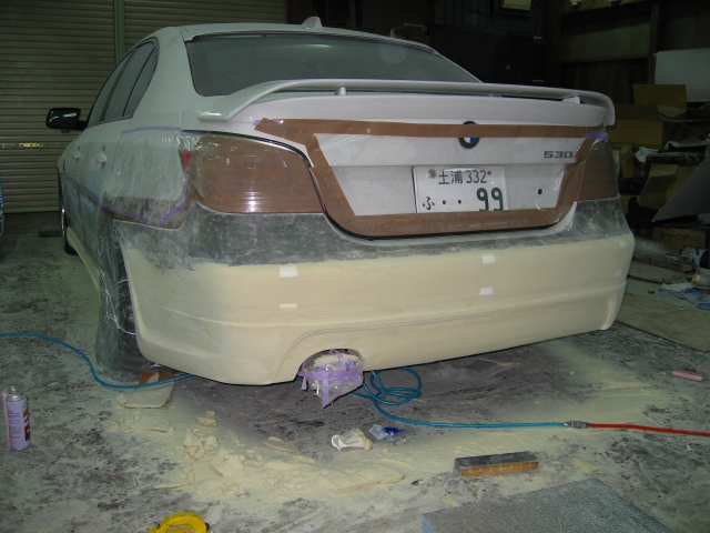 修正が入り、(ツッチーの希望を電話で聞きながらの修正です)新しい形になりました。へこんだ部分にはカーボンのディフューザーが入ります。4本出しマフラーにも対応予定です。
