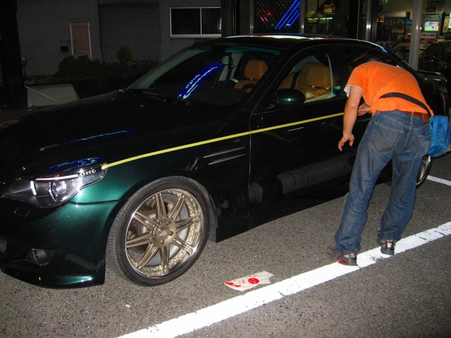 出勤して、板金やさんに引き取り、その後ハンドルの交換、とここで大きなトラブル発生、M5のパドルシフトつきのハンドルを頼んでいたので、交換することに、ところが僕の530は2005、当社デモカーのM5の車検証で部品を発注して