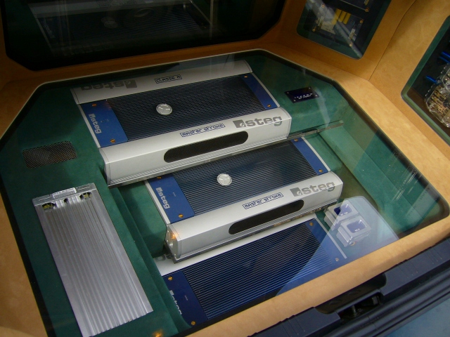 ショウエイと勝負しようと言う事で、製作を開始、新人君の気合で役一ヶ月半で完成に至りました、途中で予定していたスピーカーがないとか、いろいろな問題が起こりましたが、何とか形になりました、今後はチューニングを完成させ、外も完成させたいですね(ブレーキ、足、フェンダー等)そして四国に持ち込む予定です。最近のデモカーの中では気合を入れた、この車で参加各店のデモカーと対戦するのは、とても楽しみです。おれも参加したいよ!というデモカー所有ショップは是非、サウンドジャム四国に参加してください。また、お客さまの視聴も当日自由に出来ますので、楽しみにしていてください。