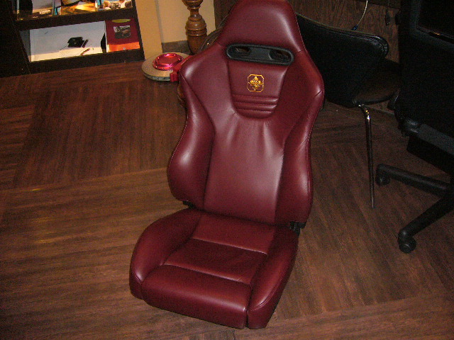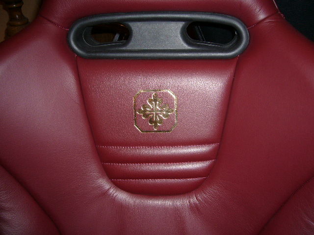 しぶーい、しぶーい、外が濃いマルーンの車で、こんな内装の車がほしくなってしまいました。(オーナーさんには気に入ってもらったので、第二号はお子様用のレカロを張り替えたいと思います)