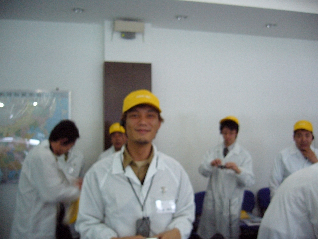 そして、到着後すぐに工場見学に行きました、働いているラインの人間は10代が多く、平均年齢は21歳との事でした、若い!給料は15000円ほどだそうです。みんなこんな感じで帽子をかぶって見学に