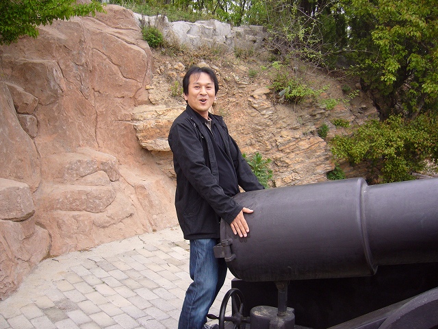 日露戦争の話が多く、その後を残す場所へ観光で出かけていきました、ここは高台になっていて、大砲で攻めてくる敵を攻撃していたようです。その上には記念碑もありました、中国人のおばちゃんに写真を取れとひつこく言われて、困りました。