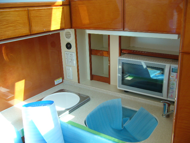 キッチンもすごくしっかりと造っていましたが、操縦席も豪華です。もちろんベットもソファーもシアターもあり、です。しかしオーナーさんはこの部分の操縦席は必要ない(二階部分にもあり)だから秋にはとってしまおうかな?なんて言っておられました。