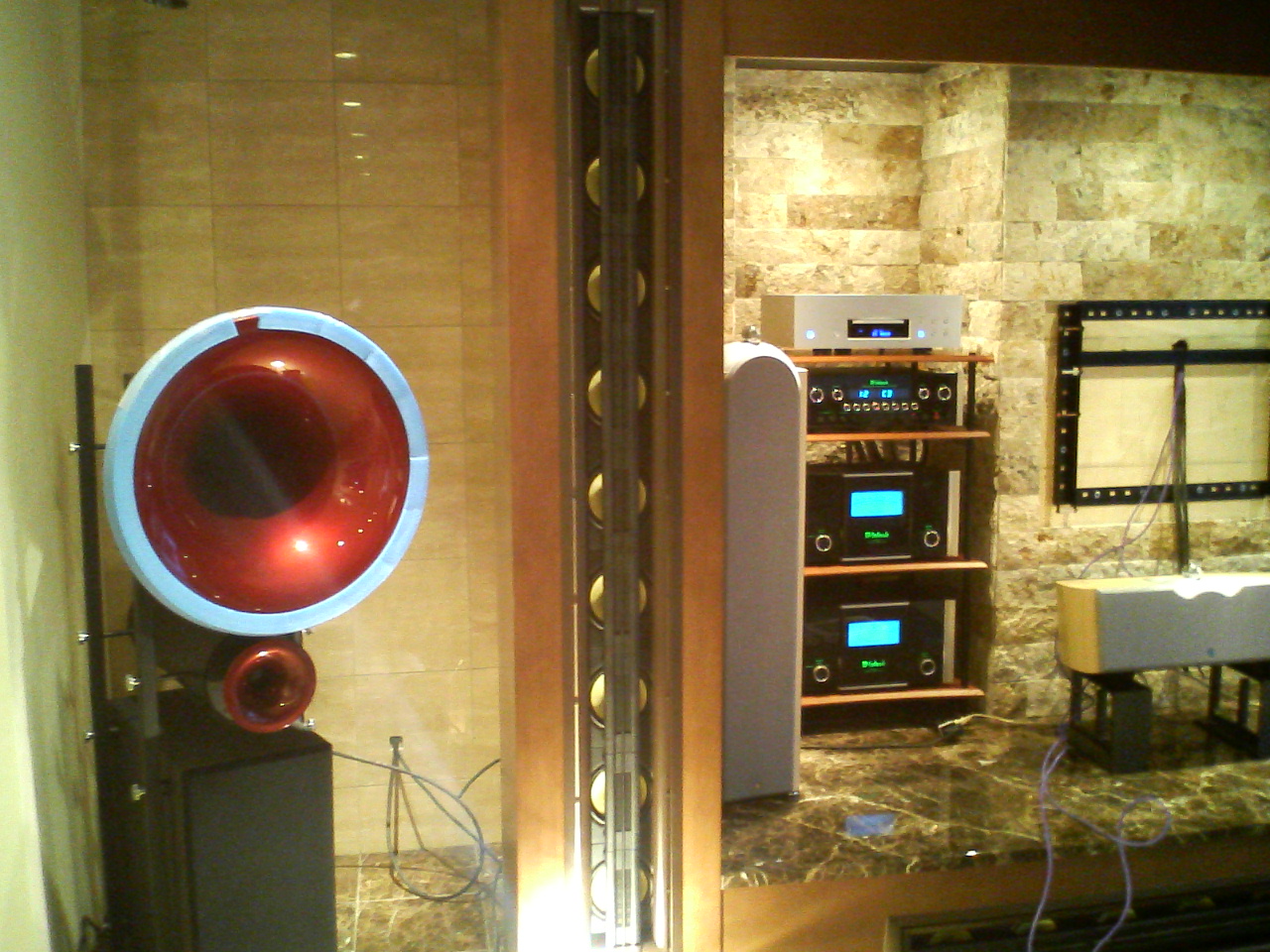 という商品がたくさんあります。KEF、アヴァンギャルド、スクリーンリサーチ、是非みなさん聞きに着てください。またマランツのプロジェクターやエプソン、マッキンも聞けますよ。AMXやマルチルームも体験できます。