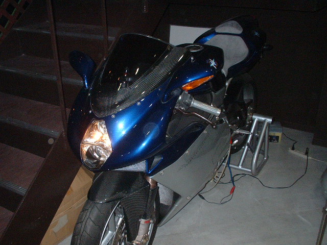 充電してセルを!ウン、ウン、グォーーンと一発始動!このバイクなんかあんまりのらへんのに凄い調子いいなーっとスタッフ全員。うーんマセラはたいがい壊れたのに?なんでかなー。そういえば今日は高級車が二台トラブルで入庫。車のトラブルはだいたい当社で何とかしちゃいますよー(^^)