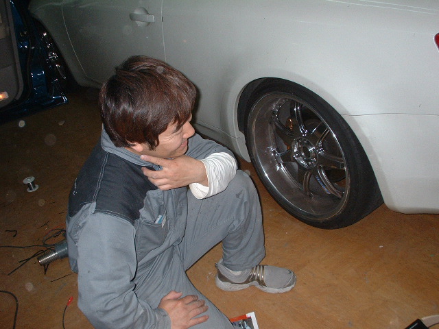 お客様の車を、作業したあとの時間がデモカー製作開始時間。これがあるから沢山のデモカーで造れるので有ります。それとそれに付き合うスタッフの根性ですね!