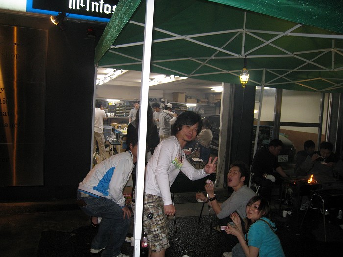 そこでイベント用のテントで雨をしのぎ、ピット内にテーブルで