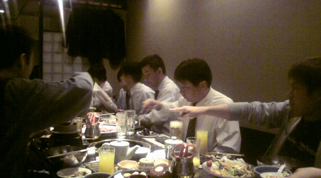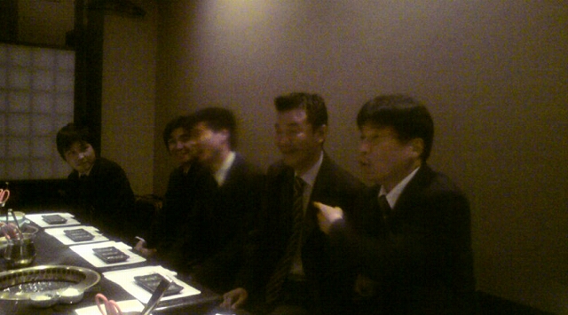 飲み会です、最初は皆さん黒のスーツ姿で