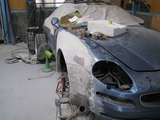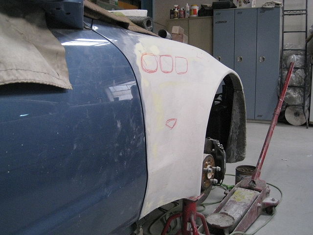 本日進行具合を確認しに行ってきました。前回のスープラは発泡ウレタンとファイバーで製作したのですが、ひずみが気に入らないと言う、板金屋さんの社長の意見ですべて鉄板で加工を施していました。フェンダー勝負は半分冗談で半分本気です、でもかっこいい車を造るという行為において、勝手にライバルにしてでも、競い合いたいのは事実です、14年ほど前にもIASCAの競技なんかで、世界チャンピオンと知り合えたのが、レベルアップの基礎になっている気もするので、やはり新しいライバルを見つけては、お互いにレベルアップしていきたいですね。完成したら必ずこの車でSIZに乗り付けて、ドーベルマンと、フェンダー談義するのが今から楽しみで、仕方がありません。