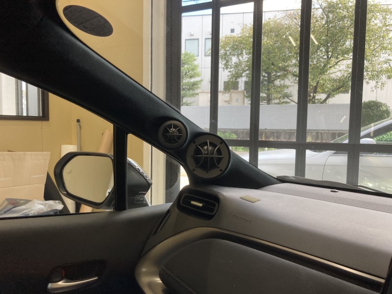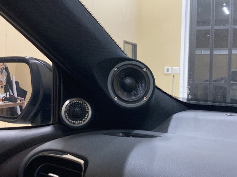 ツィーターとミッドレンジはAピラーに加工にて取り付けしてあります!