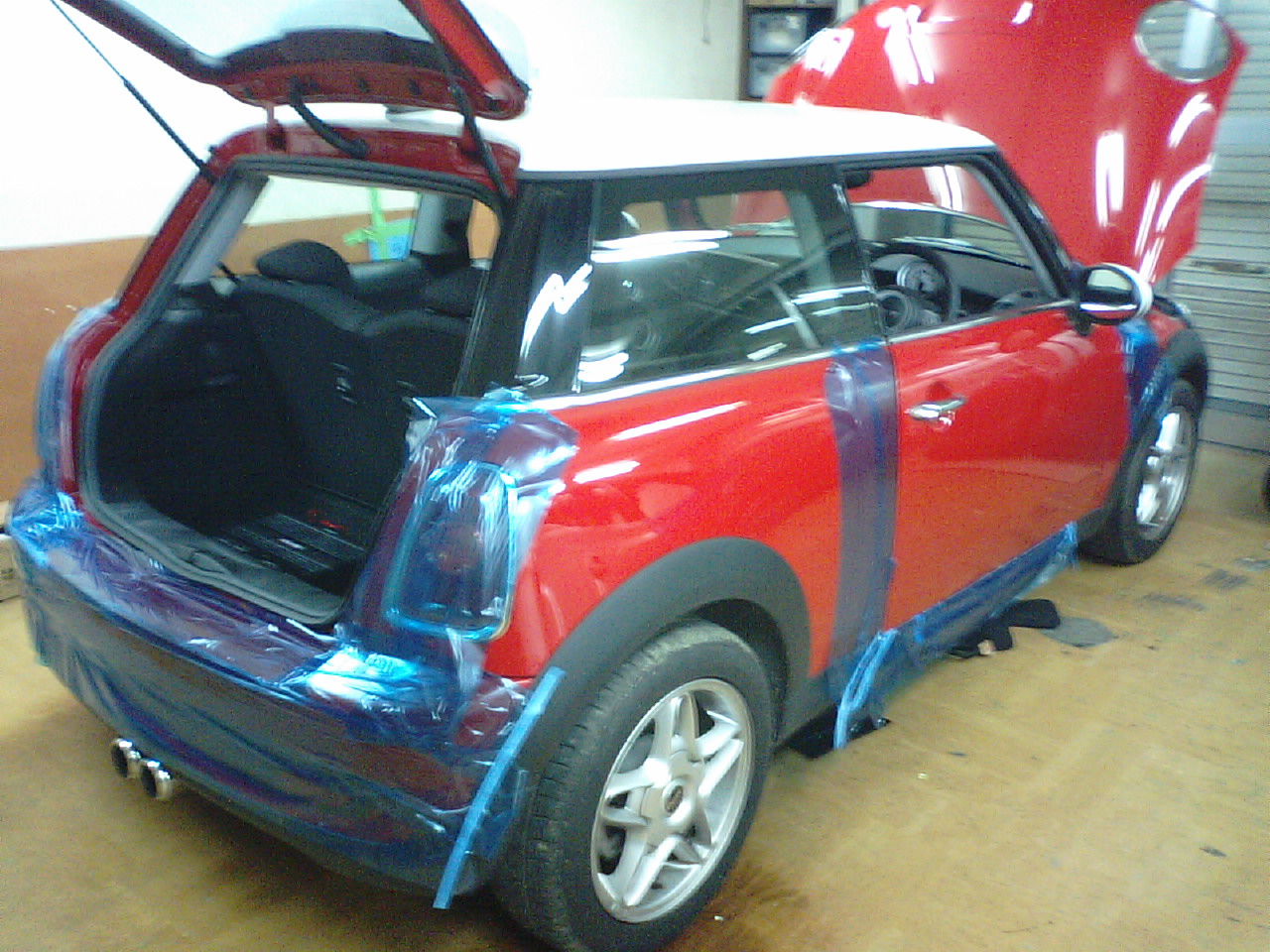 MINIの作業です。真っ赤なR56かっこいいですね~ MINIの作業も当店にオマカセ下さい!!