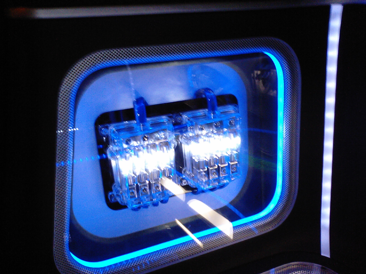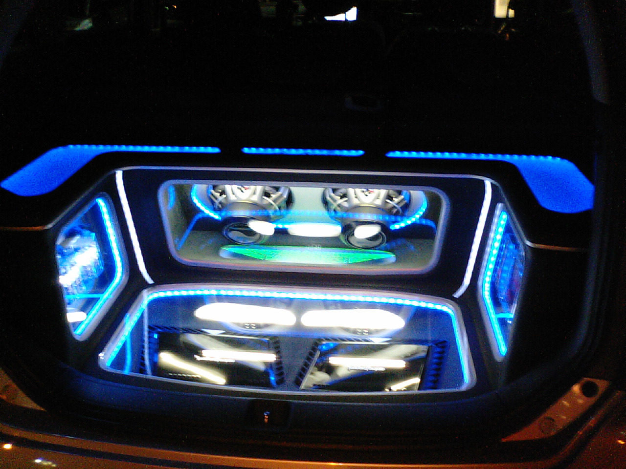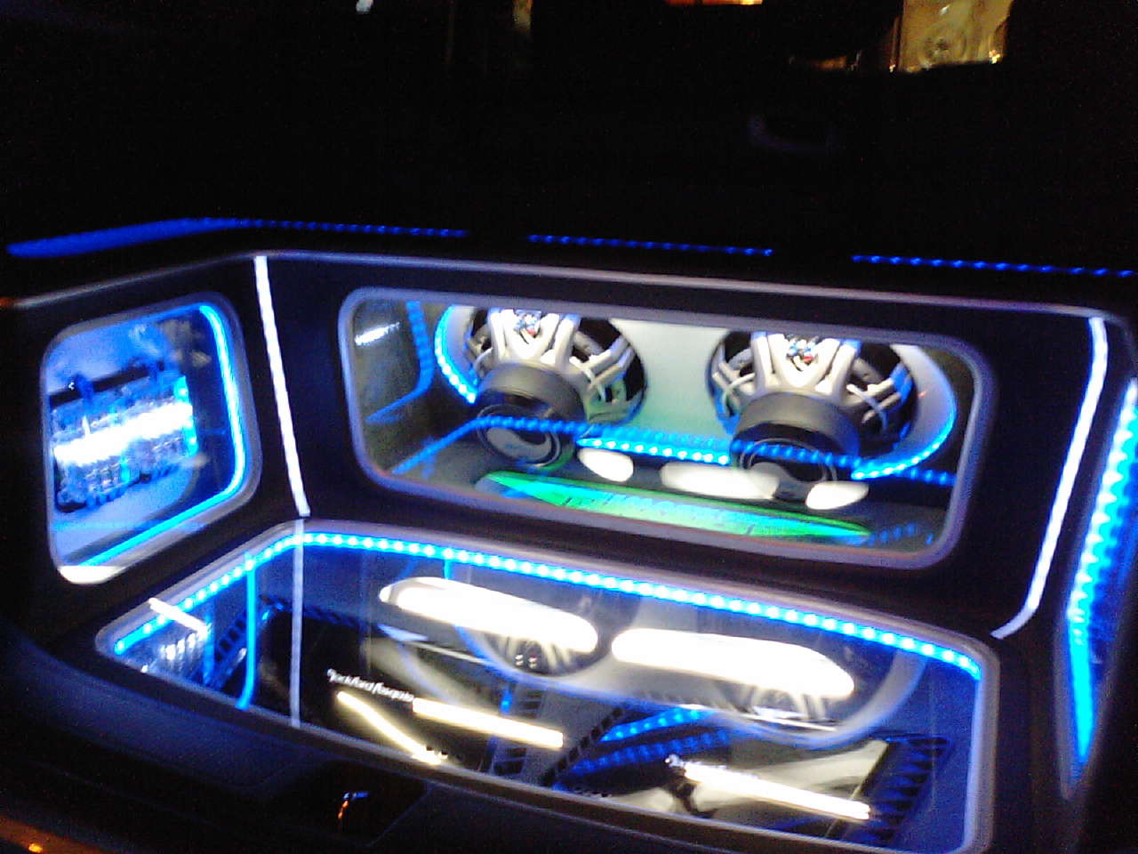 今回は青、白、緑のLEDをふんだんに使って、夜はハデ、昼はシンプルなのにパンチきぃてるでぇ仕様に!!最近良く使うアルミとパンチング。昔懐かしい素材。ロックフォードの岡田さんが作ったシボレータホが僕の中では強烈なインパクトをのこして忘れられません。アルミの加工にパンチング加工など、最終仕上げはレザーですが、SWも8発ぐらいついてたかな?なんせか綺麗なカスタム、カスタムボリュームはすんごいけど綺麗すぎてどぎつくない!その時出会った素材が今でも十ニ分に通用するからすごいわ。しかももう10年ぐらい前ちゃうかな~