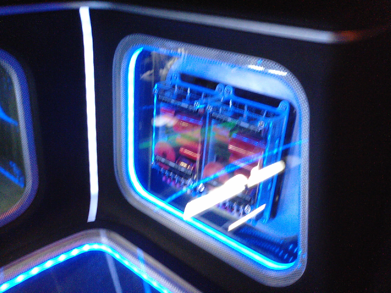 最終なやんだ天板化粧はブラックアクリルと白アクリルのハイブリッドAvkansaiステッカー挟み込みで光を入れるとアクリル全体が青く光るのよ!仕様でできあがり~