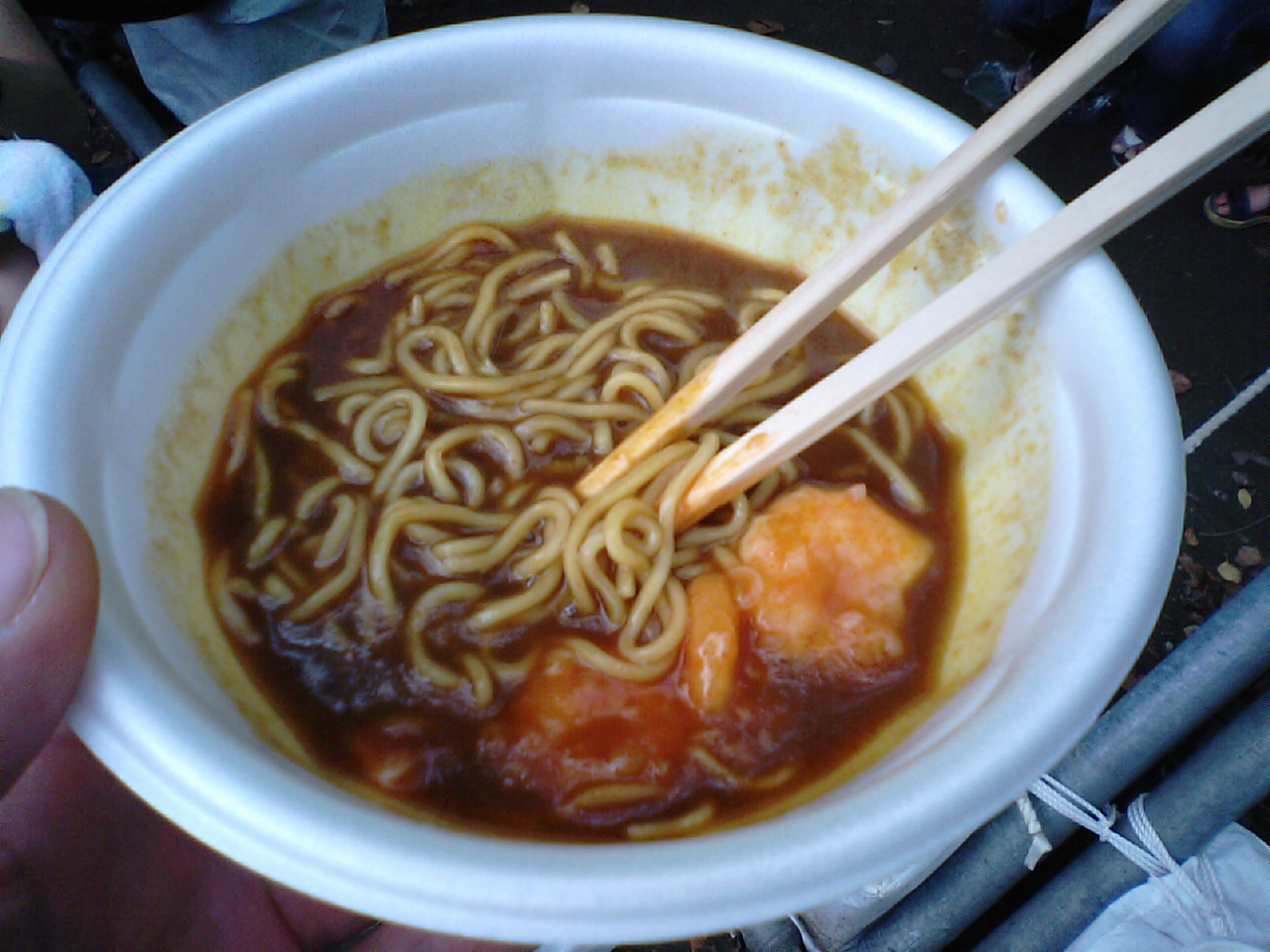 ホテルニューオータニオリジナル カレーラーメンえびチリソース入りをゲット!えびも入ってほぼカレーの味で納得の600円