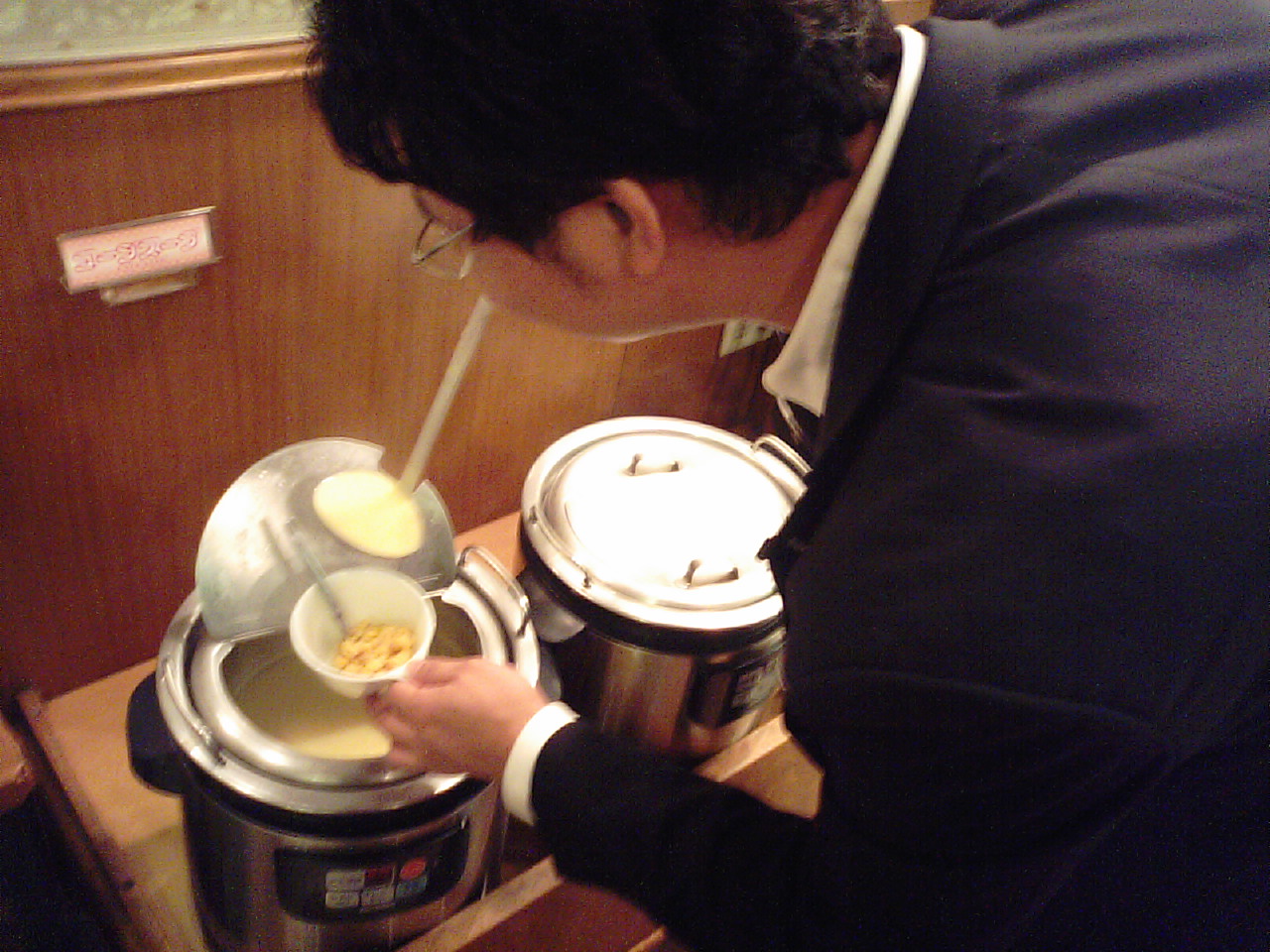 最近あまり見かけなかった曽川っさんがBIGBOYのスープバーにいきなり現れました。ファミリーレストランなのに一人でスープバーとハンバーグを食べに来ているらしく、なんで一人?と思ったのですが、一人でファミリーと付くところに行くのが好きらしく、さすがの大物ぶりを見せ付けられました。一緒にどう?と言ったのですが、「目立たなくなるからほっといてくれ!」と振り払われ8人座れる大きな席に一人でハンバーグをつついていました。なによりビックリしたのが良く見るとスープバーのカップにサラダバーのコーンが・・・ 大の大人が・・・ こんなこと日記に載せたら問題になるのはわかっているのですが、あまりにも堂々としているので・・・ 僕は思いました。こんな大人になりたくないと
