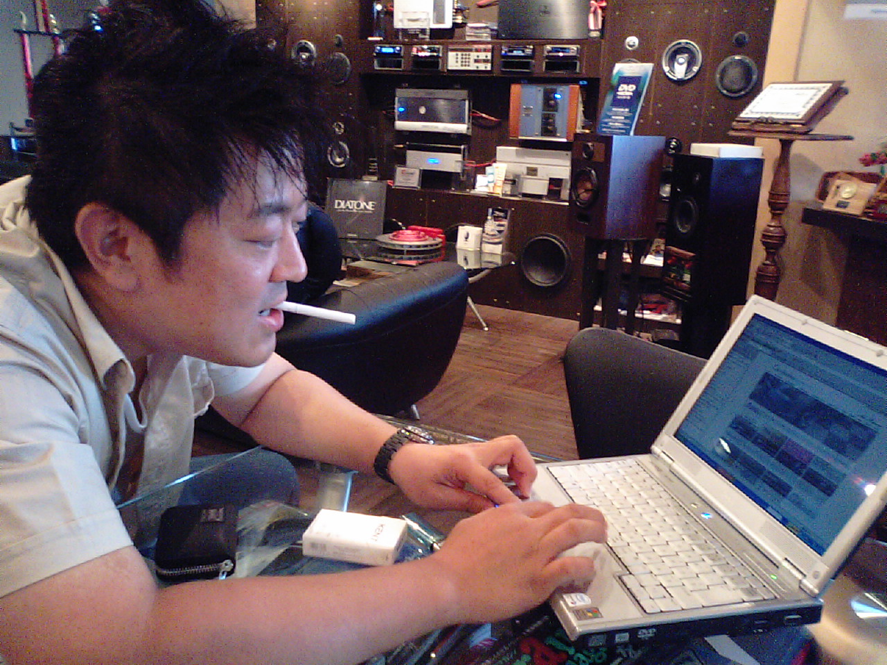 この写真をみて人面犬に見えたのは僕だけでしょうか?セイソン店長のネタばかりで、そがわっさんに「もう最近の日記むちゃくちゃになってきて、なにかいてるかわけわからへんわ~」と言われたにもかかわらず、マイクセイソンネタでもうちょっと引っ張る予定です。わけのわからない日記と思われるかも知れませんが、神戸の店長はオーディオ以外でもこんなに面白い芸を持っているということを皆さんに知ってもらいたいのです。ということは、神戸店にいけばこんなことあんなことをセイソン店長がやってくれるのです!!最近は丹下段平のモノマネもマスターしたとあって、もちネタも増え皆さんに見てもらいたくてウズウズしています。この土、日にご来店ください!サンドバックをもって「ジョー!打つんだジョー」と一人でモノマネの練習をしているセイソン店長が見れるかも知れません!もちろんジバン着て、ハラマキして眼帯もしています。つまりこの夏は神戸店がアツイ!!是非ご来店を!!