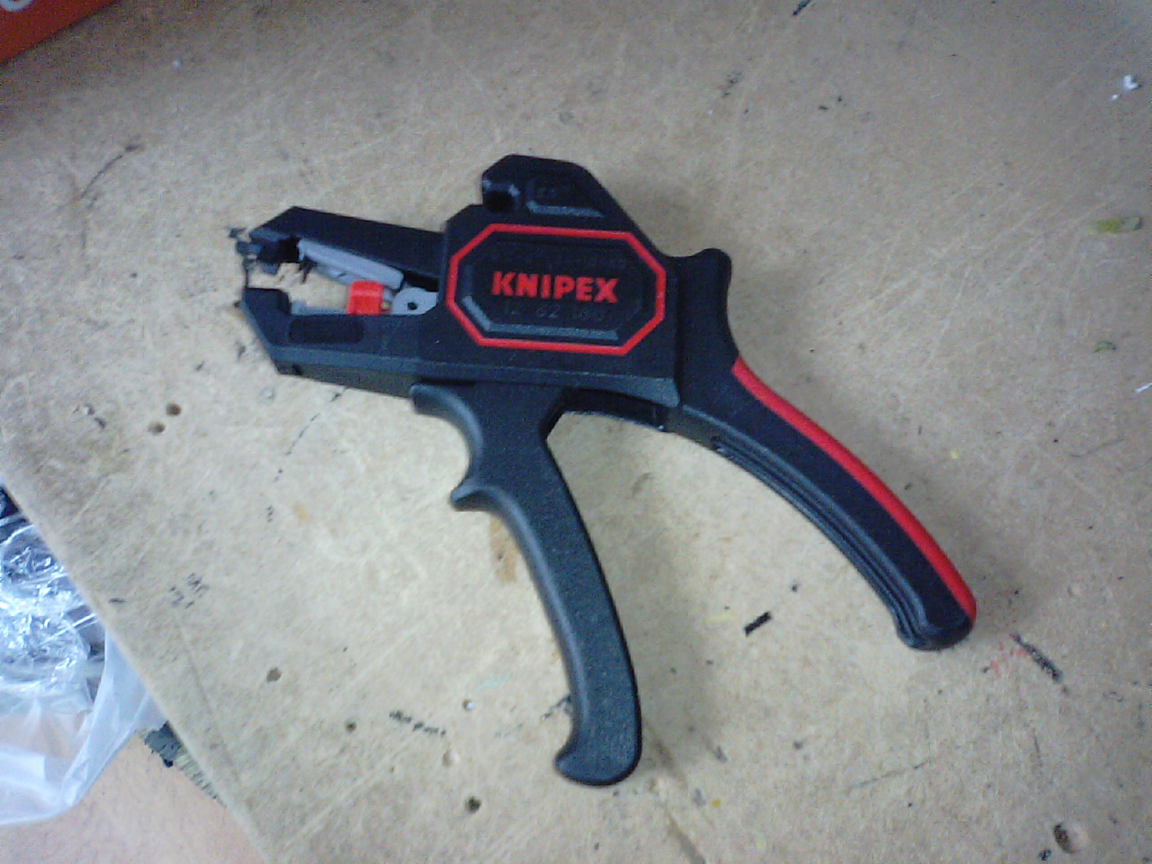 ご無沙汰ですが、またまた僕の工具を紹介します!この工具はプライヤー、ニッパーなどで有名なKNIPEXのケーブル被覆剥き機です。刃が緩いV字になっていて丸いケーブルに対して刃が面で当たるので真っ直ぐの刃に比べて力をいれずに剥くことが出来るのと、真っ直ぐの刃の場合、細い線は剥く時切れることがありますがこの緩いV字の刃は丸い線に対して面で刃が当たるので切れずに剥けます。特に細い純正ハーネスの途中を剥くときなど便利です。しいて言うと「カシャーン」と鳴ってちょっとうるさいのがネックですが、便利なので我慢できる範囲です。後、カーブルカッターも上の方に付いてて、今までニッパーで切るのが当たり前だったのが、以外にもこのカッターで切る機会がふえました。上に付いてるのでカッターとしても使いやすく、この工具を買うきっかけになったのもカッターが上についてるというのがきっかけでした。ちょっと安っぽいですけど、軽いし、便利で僕のオススメ工具です!