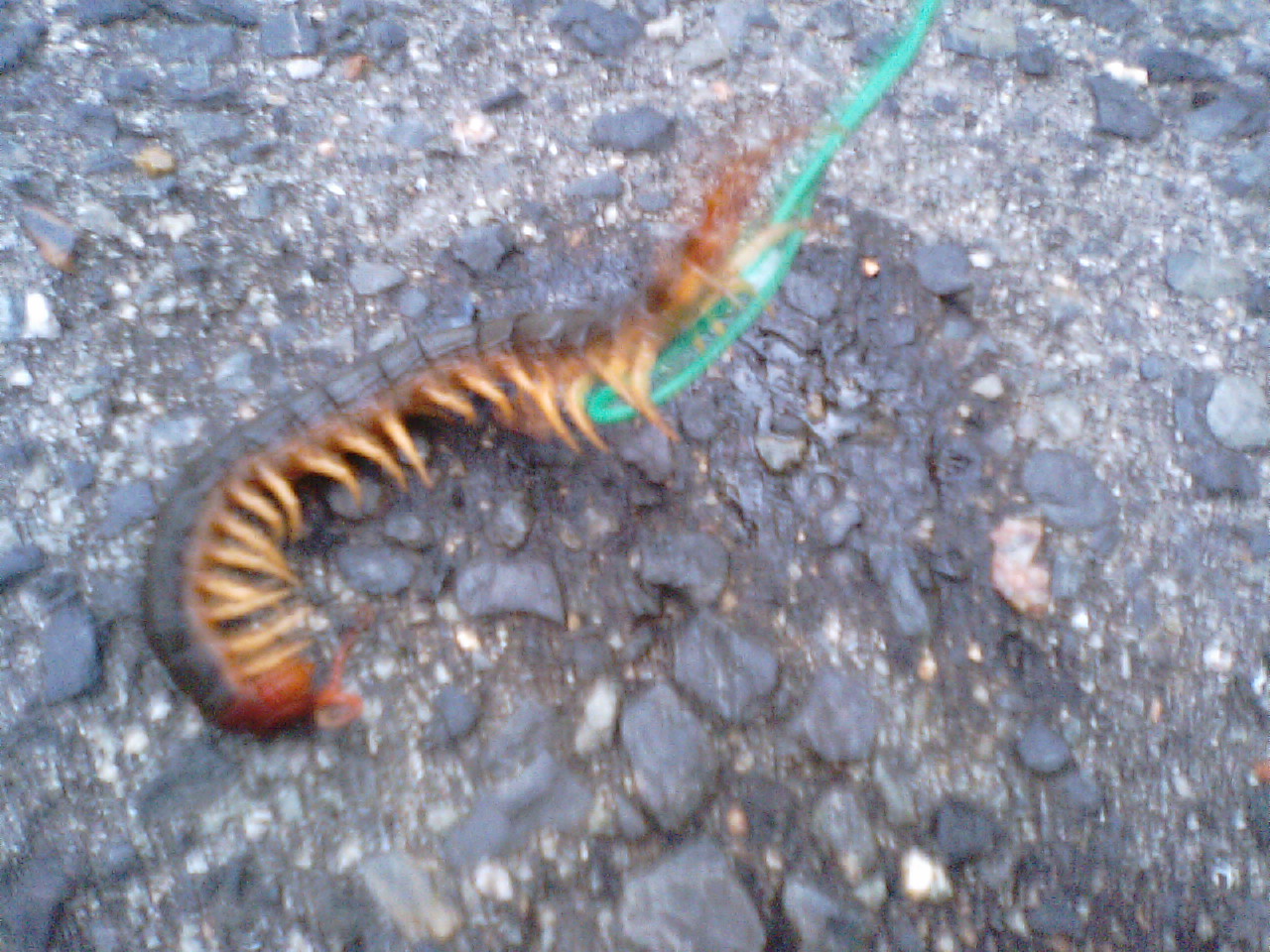スタッフのヒカピーが巨大ムカデにブレーキクリーナーと針金を使ってやっつけていました。