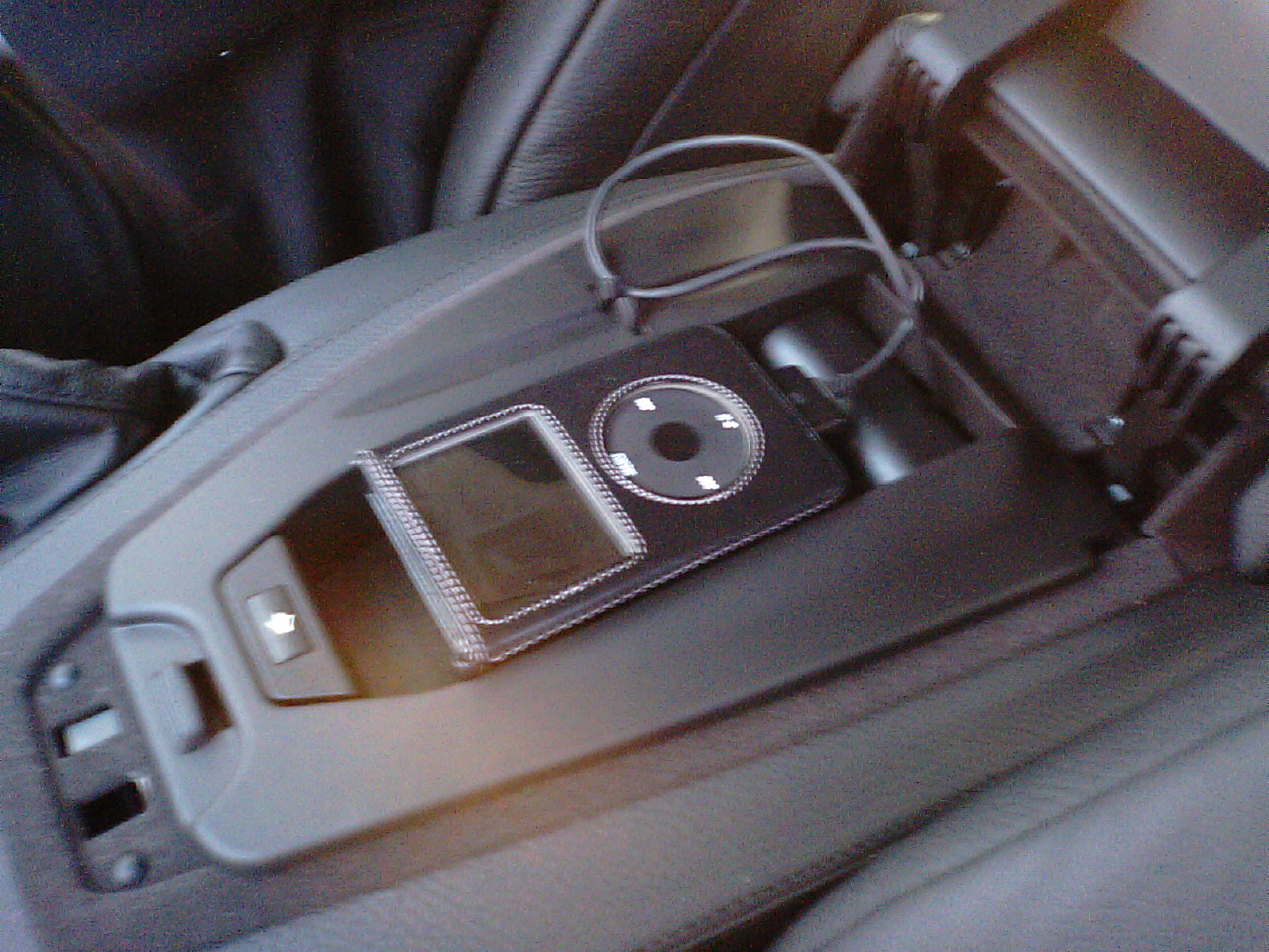 ちょうどいい場所発見!!ipodはここに入れてます。音声は、純正の外部入力がありますので、セレクターで地デジの音声と切り替えて使います