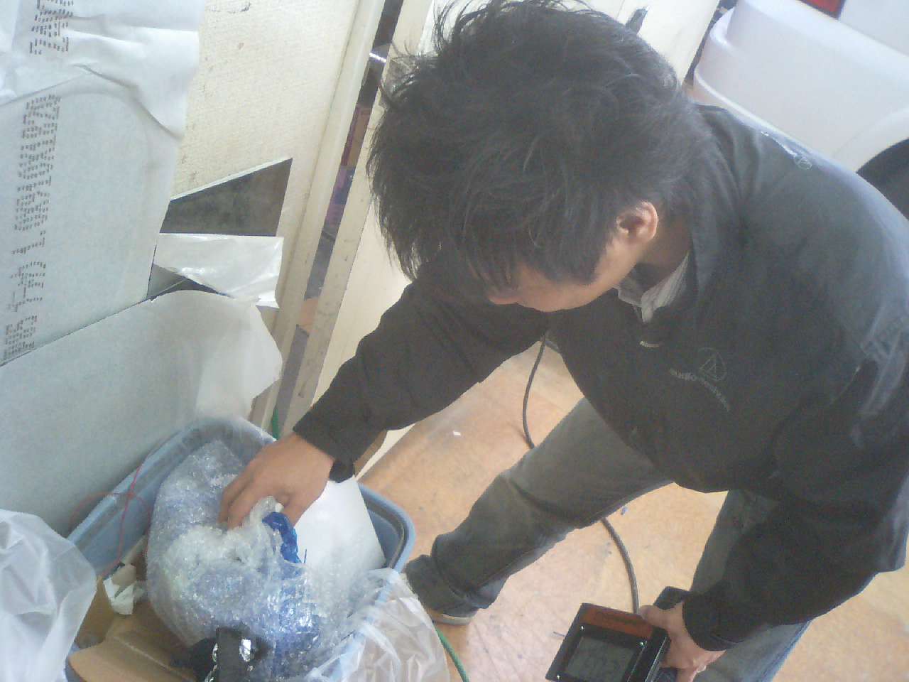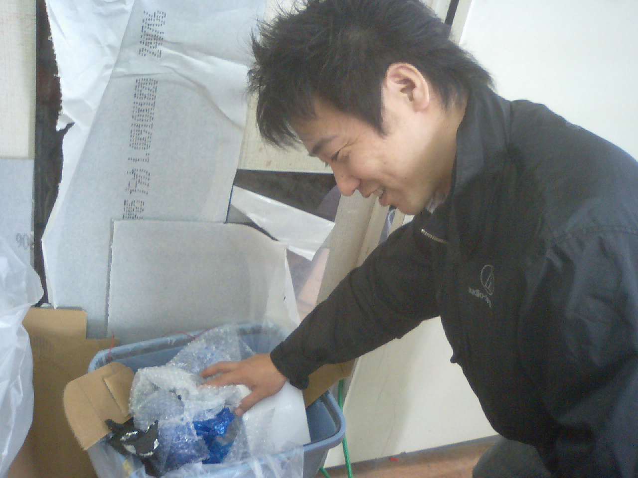 07年関西お掃除大会の優勝経験を持つ重久さんは、まるでモップの毛が生きているのかと思うぐらいのモップさばきとリズミカルな動きで床はたちまち鏡面仕上げ!!これには僕も目が点になり、参った~と言わざるをえない状態に陥りました~これはすごかった~ そして経験と2人のコンビネーションは素人では出来ない程の素晴らしい、段取りと作業のうまさにこれは僕も見習わねばと、職業は違えど、いい勉強になりました。あまりの感動に、お礼としてポテトチップス3袋と、お~いお茶10本を差し上げてしまいました~ また勝手に来て頂いて、キレイにして頂きたいものです。(黄色とグレーの靴下からのオーラ)は去年の12月のまいど打ち上げ日記よりどうぞ!