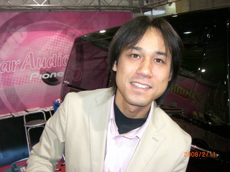 メッセでななめとなりにカーオーディオクラブサンのブースがあって「ネタちょうだい」とお邪魔しに行ったところ、高橋さんがいたので普通に撮らせていただきました。撮りますよ~と言ったにもかかわらず、あっち向いてます。さすがです!