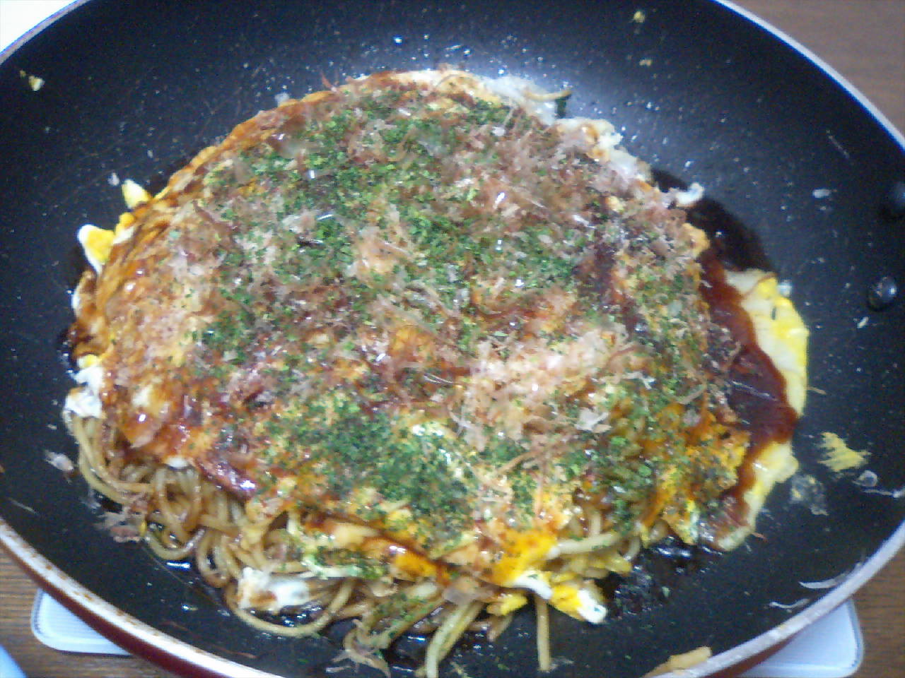 ほんまにかい。あらゆるところがかい!本日商談3件、最終チェックと納車2台、電話いっぱい、質問ちょろちょろ、メールで預かりのご連絡、今日来た商品の振り分け、業者さんとの電話でのやり取り、深瀬さんからのなぞのでんわ、段取りの相談、BMWのドア。こんな感じで1日が終わりました。チャリンコに乗って帰宅後、約30分で目の前に現れた広島焼きです。今日の写真はこれや!すかさず撮影して「これのせるわ・・・」「はぁ なにいうてんの、ほなちゃんととりや、きれいにやで!」特別嫌がる気配もないのでホンマにのせました。