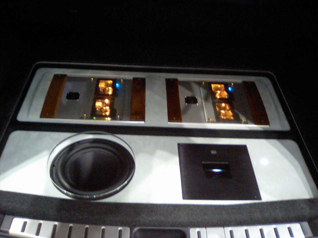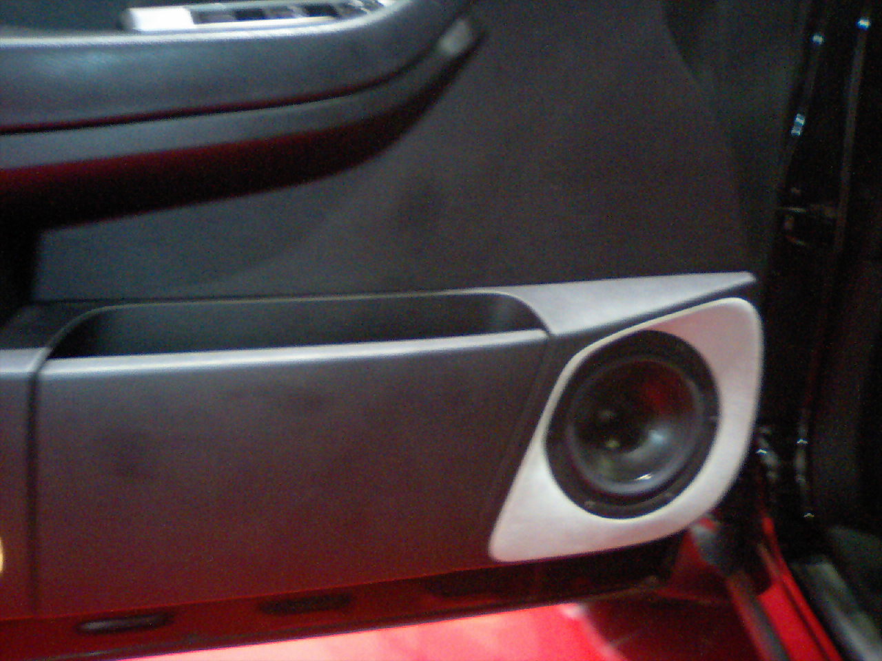 堺と神戸のW店長がついにタッグを組み、仕事が終わってから茶々っと作ってくれたドア加工です。18センチのウーファーが見事につきました。ちなみに僕はちょっとパテ入れてスエード巻いただけで、ドアに関していうとほとんどノータッチのオマカセアウターです。このドアの製作代は味噌煮込みうどんで手を打ちました。しかもお土産で!