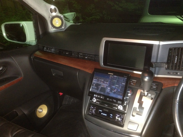 E51 エルグランドを外、内装共にカスタムし、今回はやり残していたシアターと2CHの両立を目指してP01で3WAYと900DVAで6.1CHシアターの二刀流施工をいたしました。