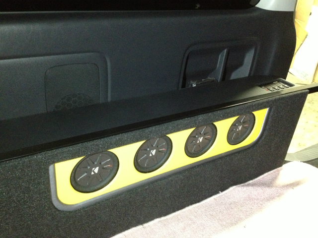 リアラゲッジにはリッターバイクが詰め込めて、それ以外の時はベッドになるという条件でサイドウォールを利用してキッカーの6.75インチSWを4発投入!