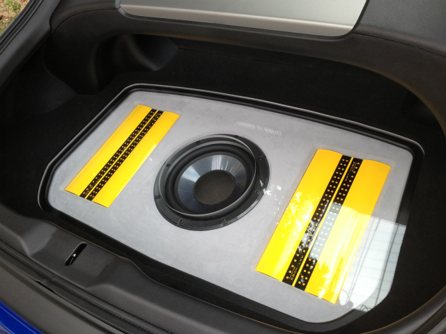 黄色が目を引くPHDのアンプが2枚とダイヤトーンのSWをストックインストレーションにて取付け!