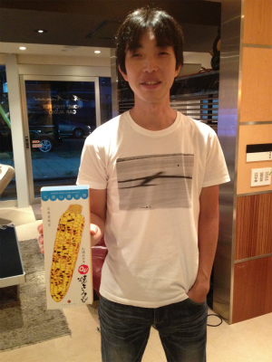 先月、5泊で北海道にロッテ戦を見にスカイマークで飛んで、ジンギスカンを3日も食べて散々うまかった~うまかった~と言いに来られたT氏のお土産は白い恋人ではなく、とうもろこし入のお菓子。