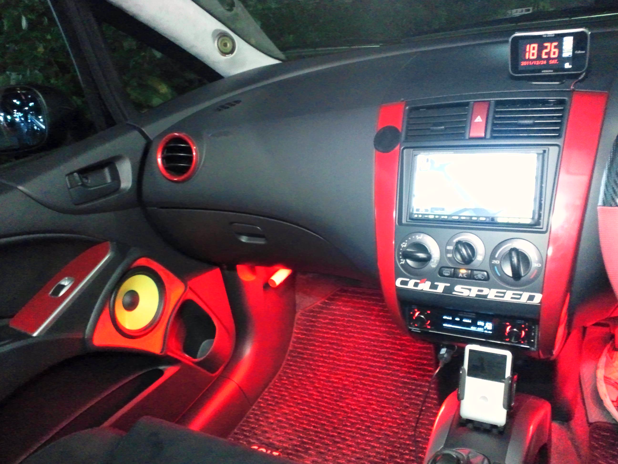 ピラーにMidが取り付けられてます。もちろんこちらも赤~く光ってます。