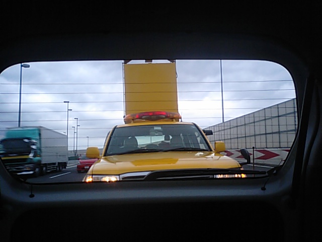これは毎度の次の朝ですね。見て判る様に後ろには道路パトロールカーが保護しに来てくれたんです。なにがあったって??