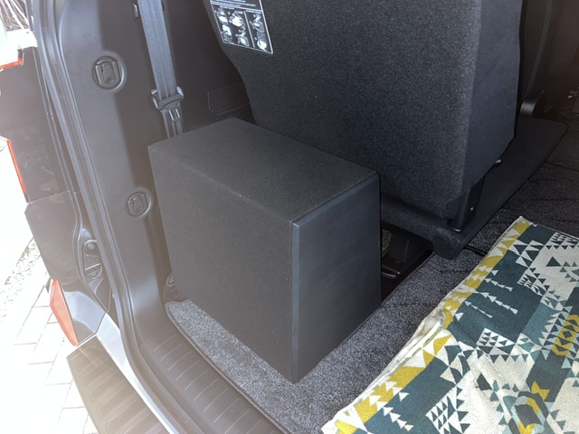 ラゲッジに機材をうまく配置して、その上にSWを載せています。