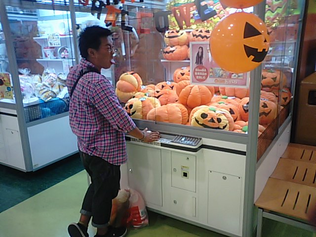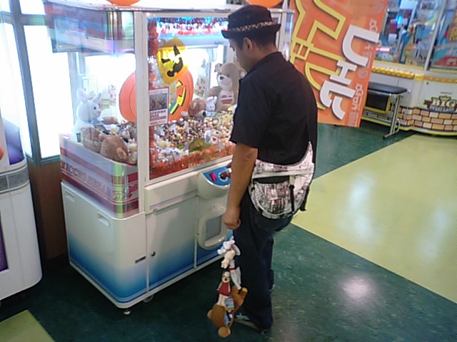 パイオニアコンテストが終わって、かえる予定が台風の影響で帰れない交通事情に巻き込まれ、皆でゲームセンターのユーホーキャッチャーに燃えてました。小さいやつを片っ端から取っているセイソン番長は低燃費少女もゲット!