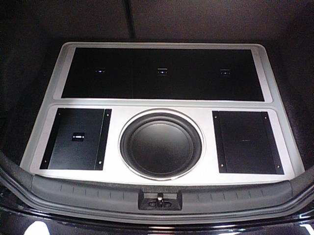 もう載っけてええよサインを頂いたので、車名は伏せておいてトランク写真だけ載せときます。A99Xが3枚、P99Xが1枚、ダミー99Xが1枚(ヴェロダインのアンプが下にいます)とヴェロダインSPL1200が1発!
