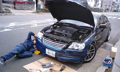 マツオDXが朝からHIDの取り付けです。彼なりにがんばってるところを撮っておきました。