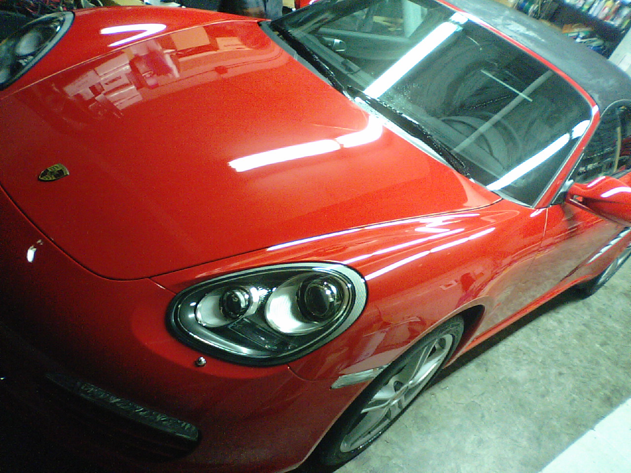 真っ赤なポルシェ ボクスターです。こちらはサイバーナビ、P01、コンフィデンス、そして小さい真っ黒アンプのリファレンス。SPは純正位置に!!どんな音になるか楽しみです。