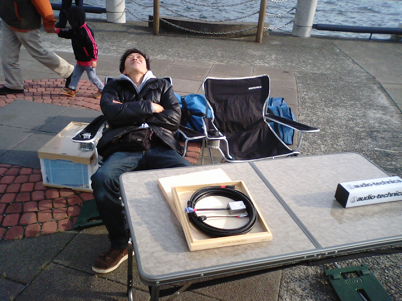 これはあきらめたのでなく、三宅さんいわく、ブログでよくみる写真らしいです。この方も僕がカメラを向けたらわかってくれる方です!そして机をよく見てください。オーディオテクニカさん商品これだけポツンと置いてました。このまいどにかけるパッションみたいなのを感じられずにいられない商品の展示!三宅さん&ゴミ箱あさりちゃん(いきますさん)どうもお疲れ様でした