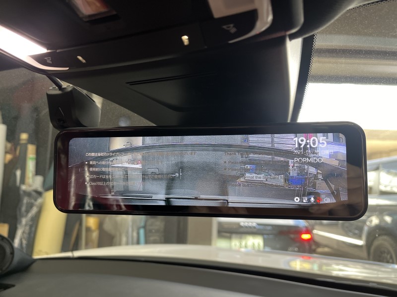 ルームミラーを交換してフロント、リアカメラを取付けしています。